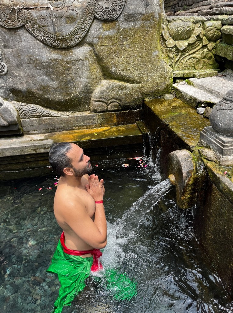 Tirta Empul temple is a Hindu Balinese water temple located near the town of Tampaksiring, Bali, Indonesia. The temple compound consists of a bathing structure, famous for its holy spring water dip, where people go for purification ritual.