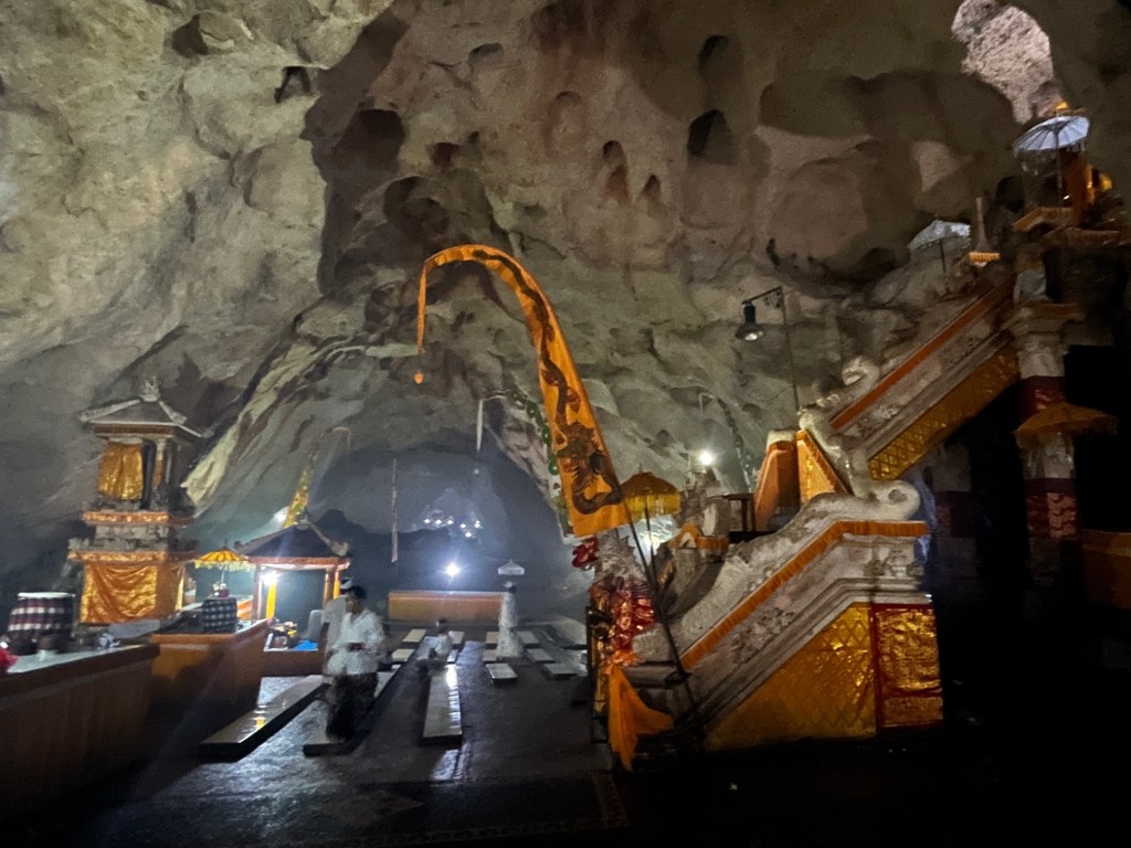 The temple at Goa Giri Putri is among the most popular destinations when you visit East part of the Nusa Penida island. It is nestled inside a large cave. After climbing 100+ stairs, through a very narrow opening you will enter the cave. Once you enter the cave it become much cooler and ambience changes completely.