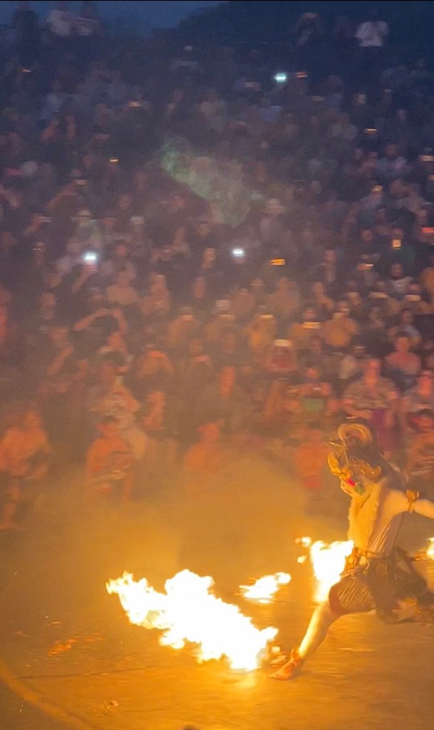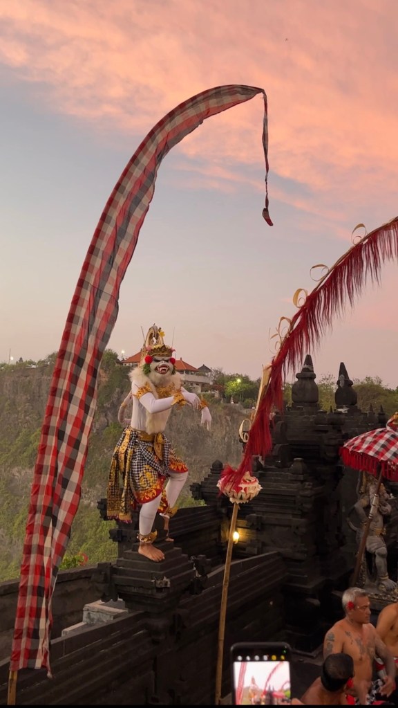 We reached the temple very close to the sunset due to the traffic, but able to watch the Kecak Dance performance. Kecak dance is set against the backdrop of the majestic Uluwatu Temple, this ancient sacred dance brings to life the famous epic Hindu story, Ramayana. As the sun begins to set, the rhythmic chanting of the performers, known as “kecak” fills the air, creating an otherworldly atmosphere. The Balinese dancers, dressed in vibrant costumes, skillfully depict the characters of the Ramayana story. This is the performance not be missed.