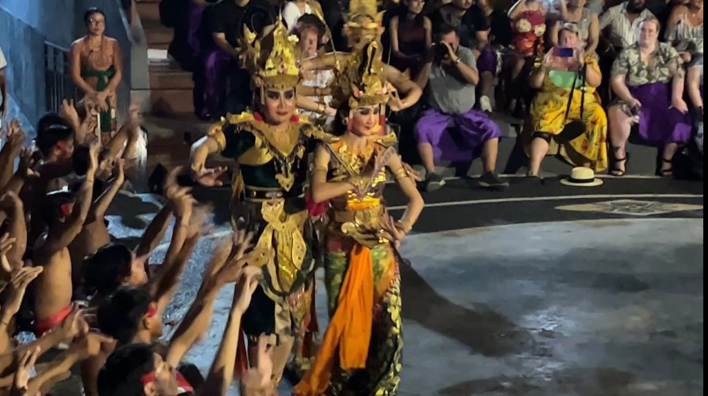 In this performance the music is produced by the local all women orchestra group, they played various traditional instruments, and the Balinese dancers expressed the story of dance-drama through the whole bodily gestures. I totally recommend this show. This will definitely transport you to the magical world of dance and music.