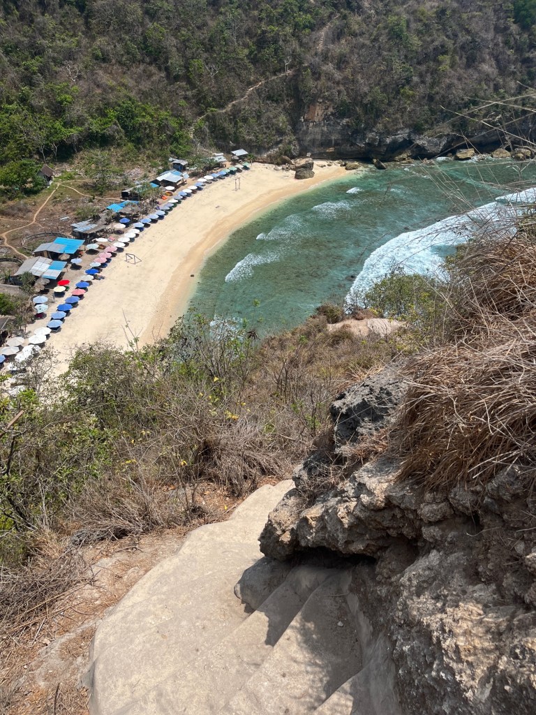 It’s a little walk ahead of Diamond beach. There are steps to get down from the cliff to the beach. This was not a steep hike and finally was able to got the beach and swim in the crystal clear water of Atuh beach.