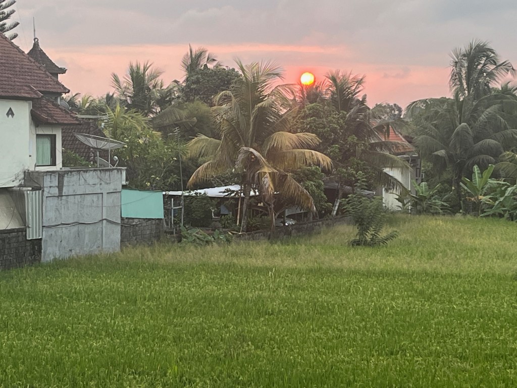 After reaching our Hotel – Bali Sila Bisma in Ubud, we freshened up and took a nap 🙂 Around 6 pm we had tea and were able to see the sunset over the rice field from our balcony.