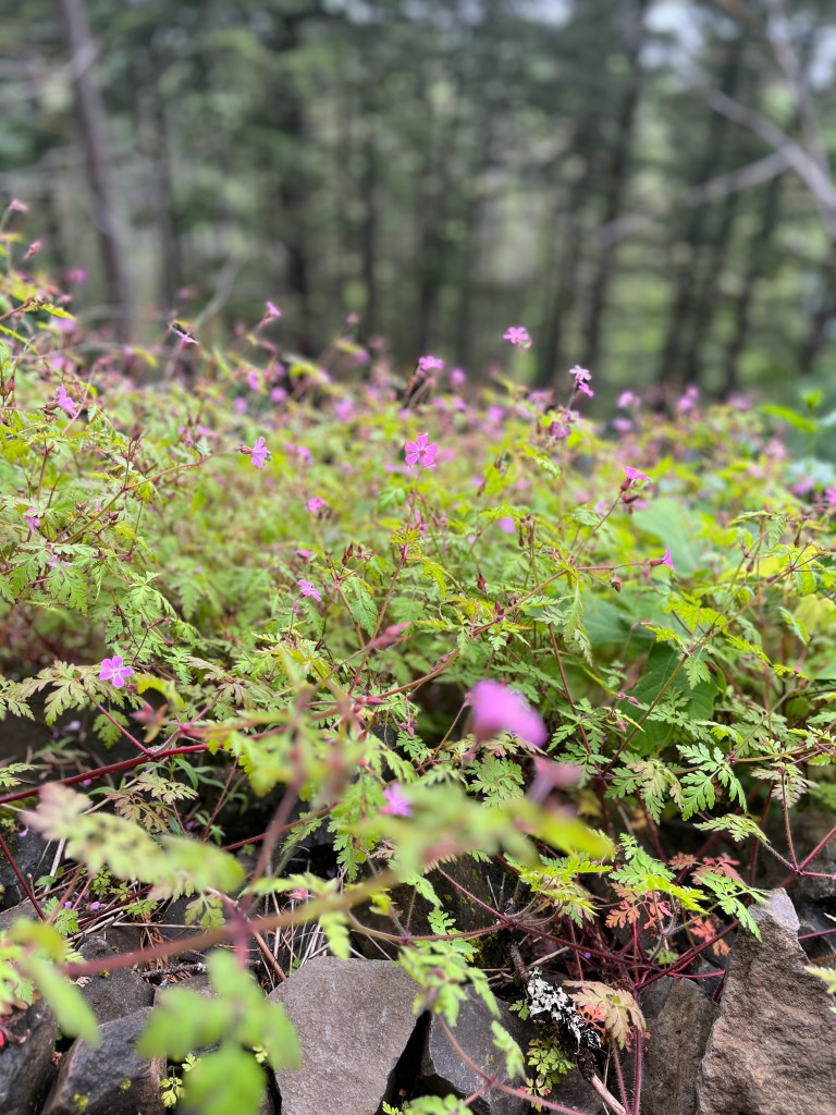 The Horsetail Falls Trail begins climbing some easily graded switchbacks with beautiful rock walls . You’ll pass your first trail junction here, where the Gorge Trail #400 heads east. After several switchbacks dotted with ferns , mosses and wildflowers , the trail levels out and heads west high above the Gorge below.