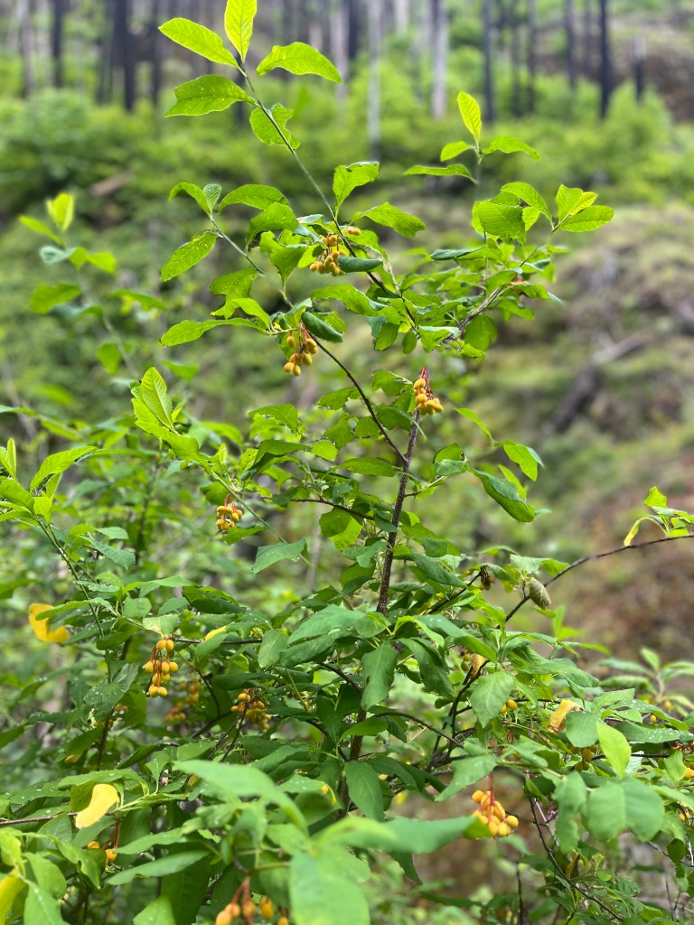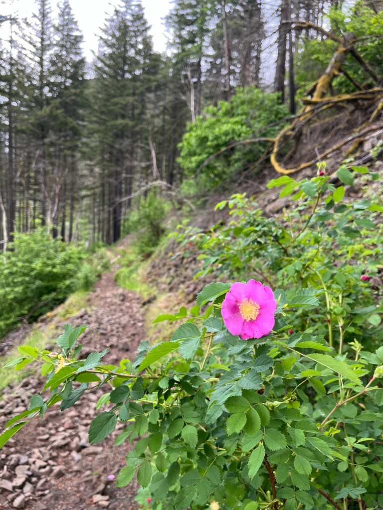 The bared slopes above Middle Oneonta Falls bloom with variety of plants in spring specially roses and indian plums .