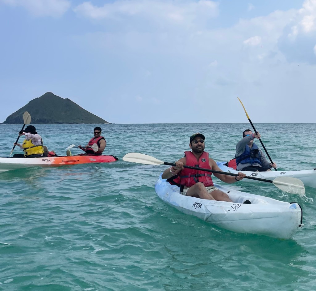 One of the highlights of the trip! We paddled through the turquoise waters from Kailua Beach to the stunning Mokulua Islands. Along the way, we spotted sea turtles swimming right beside our kayak. The adventure didn’t stop there—we explored hidden tide pools, cliff-jumped into Queen’s Bath, and relaxed on the pristine shores. It was an adventure getting to the shore fighting the waves, but nothing a good poke bowl and shave ice couldn’t fix afterward.