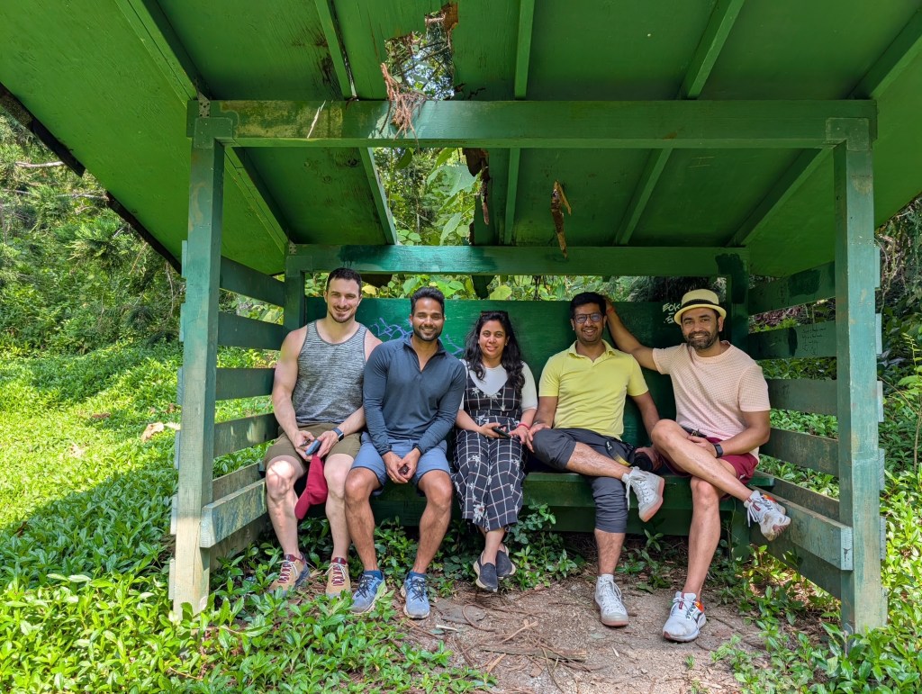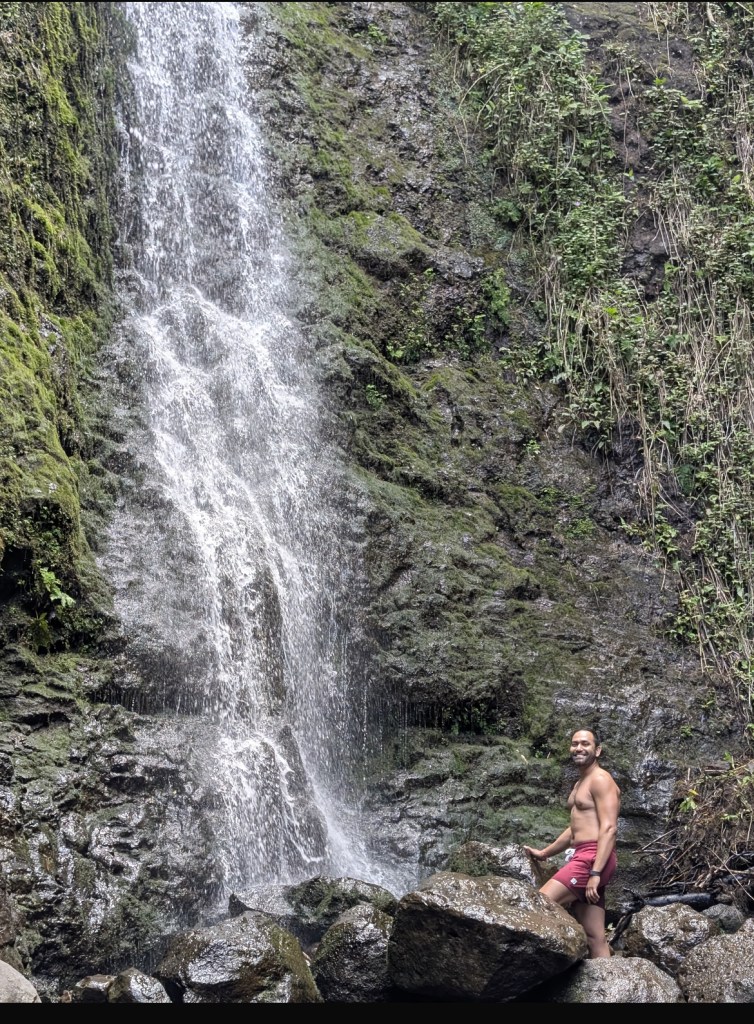 This is a jungle trek leading to a stunning waterfall where we took a refreshing dip—nature’s own shower!